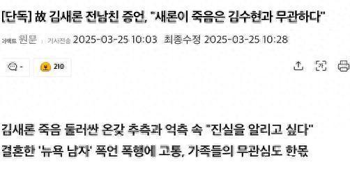 3月25日,韩国媒体找到疑似金赛纶的前男友K某并采访,K某称她会走上绝路不是因为金秀贤,而是被丈夫家暴。
