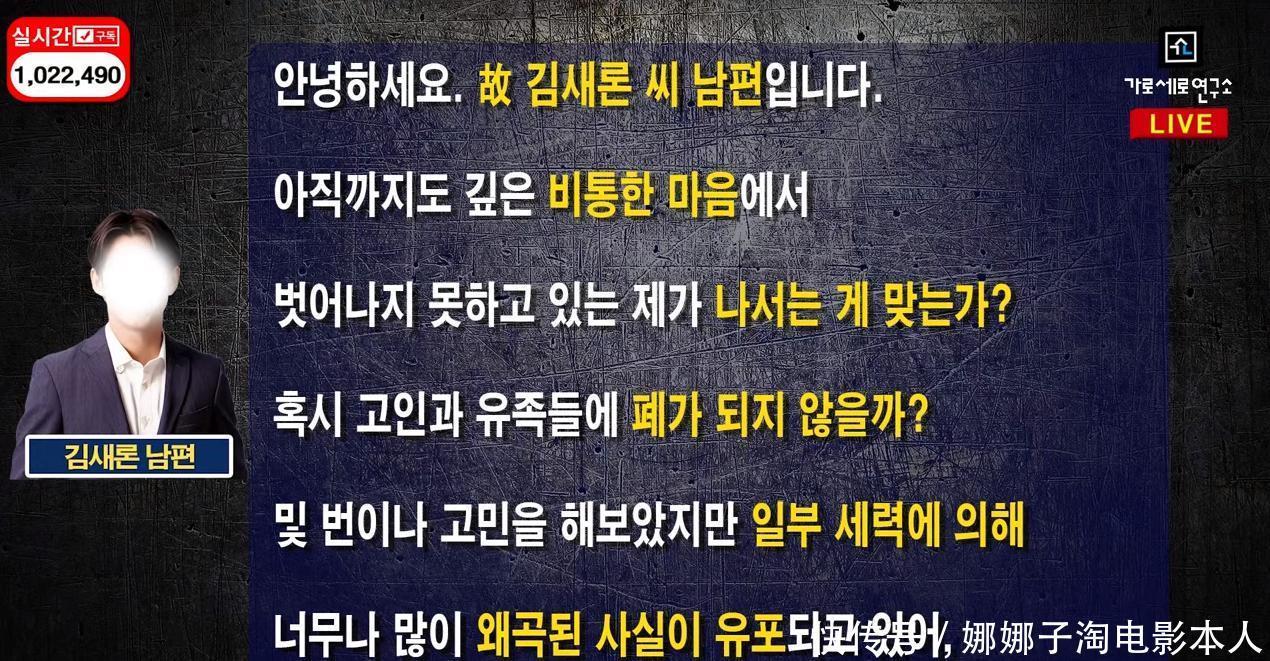 但25日晚横竖研究所的直播立刻反击,除了认为K某是被金秀贤威胁以外,甚至在直播开始15分钟之前,金赛纶的丈夫、家人突然拜访,还提供大量资料,证明金赛纶生前因金秀贤,以及李镇浩而在精神上饱受创伤!